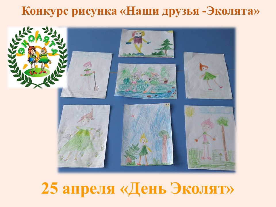Дети приняли участие в конкурсе рисунка «Наши друзья -Эколята» где они нарисовали своих новых друзей Эколят - Шалуна, Тихоню, Ёлочку и Умницу.