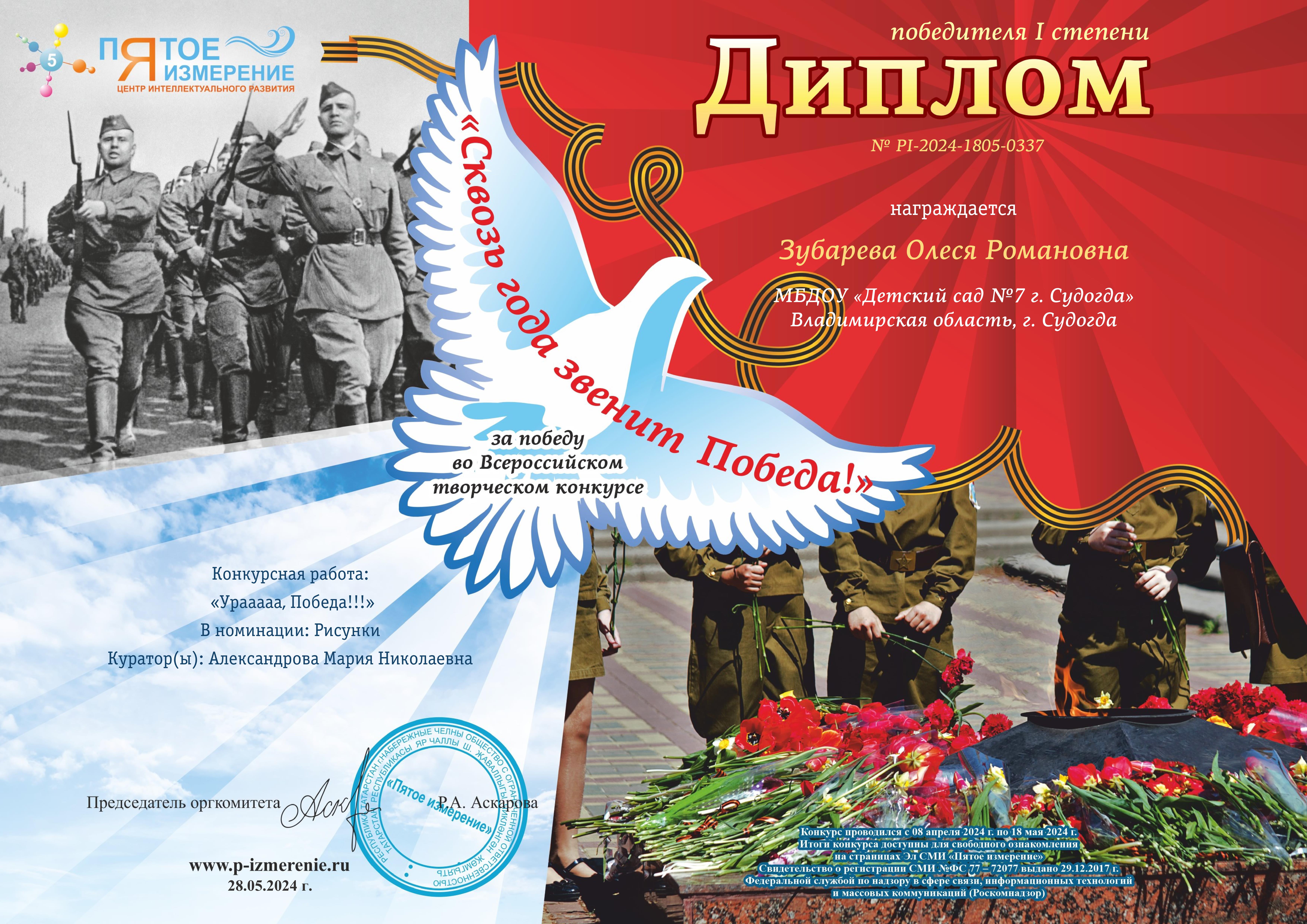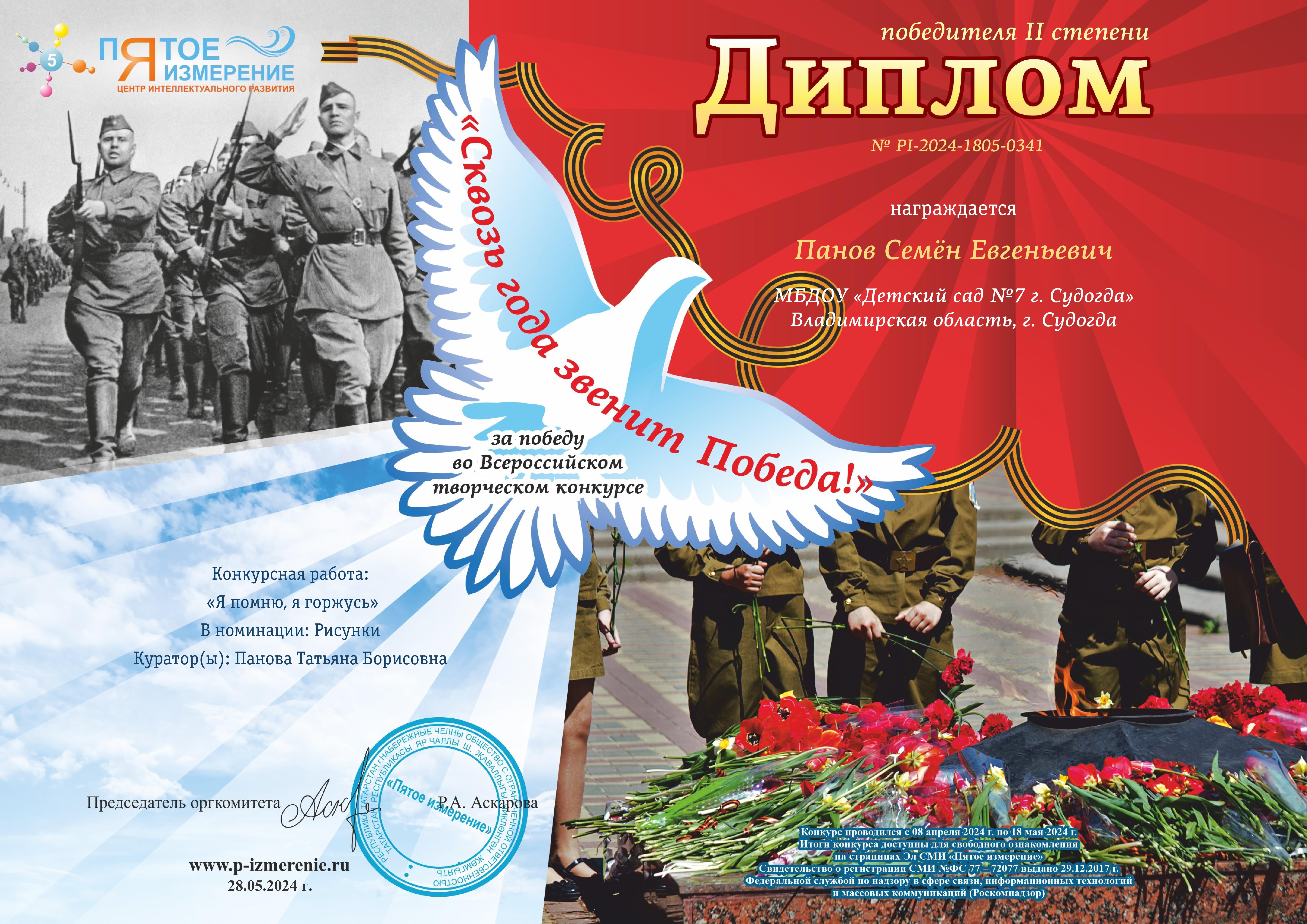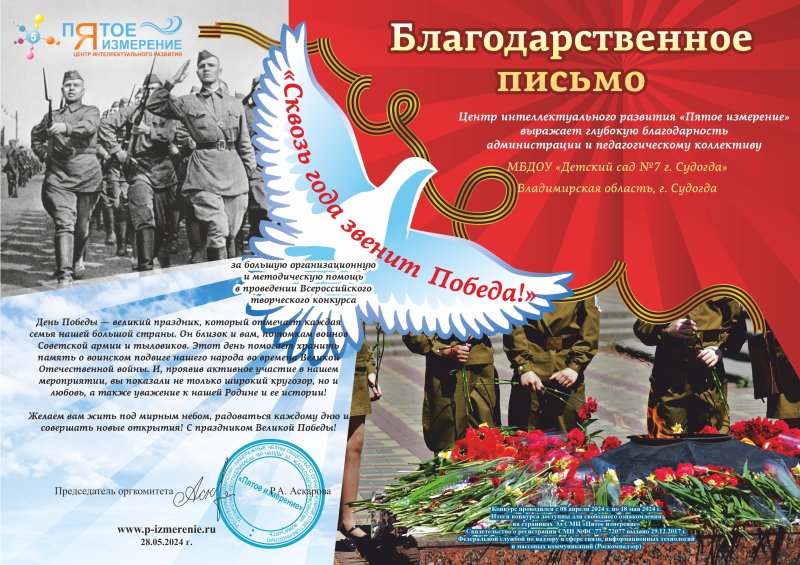 Благодарность Центр интеллектуального развития "Пятое измерение" - "Сквозь года звенит Победа"